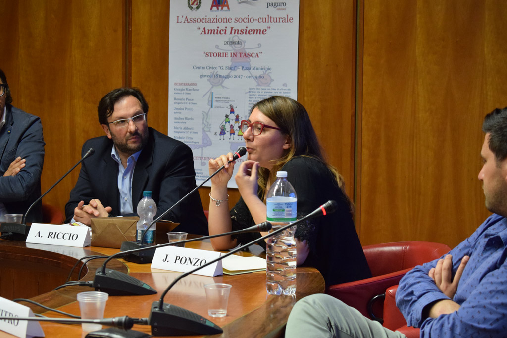 L’Associazione socio-culturale “Amici Insieme” di Siano (SA), ha presentato alle ore 19:00 di giovedi 18 maggio  2017, presso il Centro Civico “G. Siani” in P.zza Municipio, il libro “Storie in tasca” scritto dalla giovane psicologa dello sviluppo e dell’educazione dott.ssa Jessica Ponzo, che, al suo esordio, sta già riscuotendo un considerevole successo